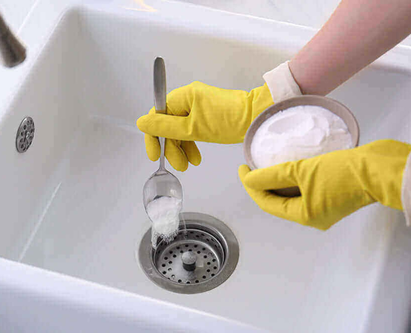 Alle zwei Wochen Essig und Backpulver verwenden – auch wenn der Abfluss noch nicht verstopft ist.
